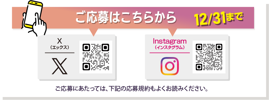 ・Instagram:賞品のメール送信をもって当選の発表とかえさせていただきます。